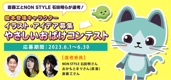 おかもとまり氏が原案を、NON STYLE 石田明氏(以下「石田氏」)が脚本を務め、俳優の斎藤工氏(以下「斎藤工氏」)、タレントの中川翔子氏が声優を務めたYouTubeアニメ「ウシガエルは、もうカエル。」のスピンオフ企画の絵本化(以下「本絵本」)に合わせて、 当絵本内に登場する「やさしいおばけ」のキャラクターデザインを募集するコンテスト(イラスト部門・アイデア部門)となります。