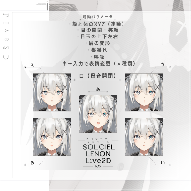 『レノン』(LENON)は、FaceRig及びAnimaze向けに開発したオリジナルのLive2Dモデルです。