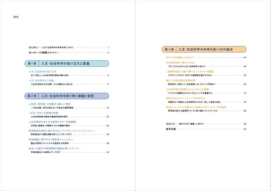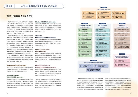 本レポートでは、昨今「危機」に立たされている人文・社会科学系(以下、人社系)学問を取り巻く課題とその構造的背景を明らかにし、人社系学問がポテンシャルを発揮できる未来に向けた30の論点を提示しています。