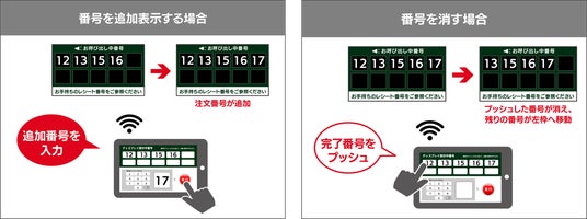 既に好評販売中の「呼び出し番号表示システムCall Number」は、店舗ごとのスタイルに合わせて制作される表示デザインや、システムの多様なカスタマイズが魅力の製品です。一方、今回新たに提供を開始する「呼び出し番号表示システムCall Number Basic」は、発注から納品までの導入工程を可能な限り簡潔にすることで、より簡単に低コストでスピーディーな導入が実現できます。