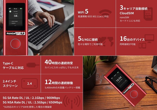 パンダスタジオレンタルは、3キャリア(Docomo, au, SoftBank)の中で最も繋がりの良いキャリアを自動接続し、かつ通信容量が無制限、連続12時間通信可能な最強モバイルルーター「PANDA WiFi5G」と、日本初(*1)の抗菌&抗ウイルス加工、防水、防塵、耐衝撃構造を持つJVC小型カメラ「GY-TC100」に、モバイルバッテリーを加えた「国内トラベルパッケージ」を通常レンタル価格の41%引きの1,980円(税込、通信量込)で10月28日(金)に運用を開始する。10月11日に実施された1日50,000人とされていた日本への入国制限解除に加え、かつてない円安によって、今後増大が見込まれる外国人旅行者にも安心して日本旅行を楽しんで頂くため。特に、「PANDA WiFi 5G」は最新の高速通信規格である5Gに対応し、海外からの団体ツアーなどの大型案件にも対応できるよう、500本以上の在庫体制で運用している。また、パンダスタジオレンタルは、グローバル化する社会に対応するため、多言語(日本語、英語、中国語、ネパール語)でのサポートも可能。
