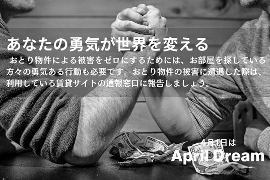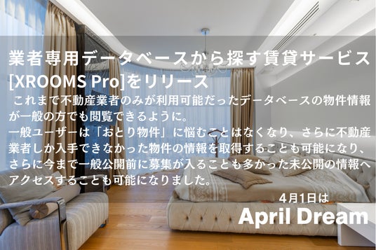当社は、4月1日を夢を発信する日にしようとするApril Dreamに賛同しています。このプレスリリースは「業者専用データベースから探す賃貸サービス『XROOMS Pro(エックスルームスプロ)』を提供するオイロバ&パートナーズ合同会社(本社 東京都渋谷区)」の夢です。