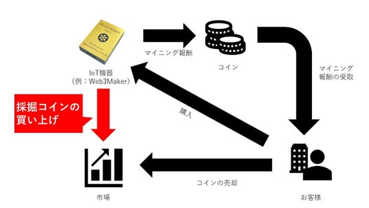 - 本特許技術を搭載した機種「Web3Maker(R)」のこれまでの実績本特許技術を搭載した機種である「Web3 Maker(R)2.0」は、その驚異的な運用コストの低さと、本特許技術による採掘対象コインの価格上昇構造により、2023年には実績で年率+73.7%を達成しました。これは電気代を考慮したパフォーマンスであり、既存のマイニングマシンを完全に過去のものに追いやる偉業となりました。その他に、USB給電ができることやWi-Fi接続ができるため、マイナーは高圧受電設備やマイニングファームを用意する必要が無くなり、設備投資費用を大幅に削減することができたことも大きな成功と言えます。また、当社は今後Web3 Maker(R)を様々な家電に搭載し、「稼げる家電シリーズ」を実現し、家電が家計のお財布を支える時代を到来させます。この家電はWeb3 Maker(R)を搭載することで、ブロックチェーンの世界につながるようにもなります。稼げるエアコンがブロックチェーンの世界に各世帯の温度を記録しだし、企業はこのデータを利用することでしょう。世界各地の温度計は政府ではなくマイナーが設置するようになるため、政府のコストは削減にもつながります。このように、家電が人類の大規模データベースであるブロックチェーンにつながる世界はメリットにあふれているため、この世界を目指すことは当社が責務と強く感じております。これからもこの目標に向けて新製品の開発を行ってまいります。
