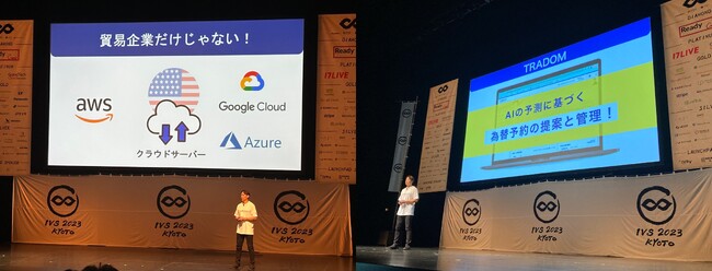 IVSとは、トップレベルの経営者・経営幹部が一堂に集まり、業界の展望や経営について語るカンファレンスです。IVS2023 KYOTO「LAUNCHPAD」では、約400社の応募から厳しい審査を経て選出されたスタートアップ14社が登壇し、業界をリードする経営者の方々が審査し順位を争いました。そこで、当社が今年5月末にローンチした「トレーダム為替ソリューション」について当社代表の阪根がピッチを行いました。当社は引き続き、多通貨や輸出企業などに対応する機能追加を実現してまいります。