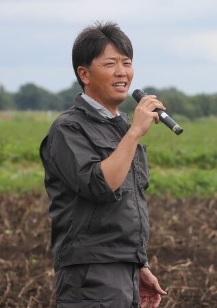 続いて、郷原組合長が「カルビーポテトとは父親の代から40年以上のお付き合いをしていて、長年一緒にじゃがいもづくりに取り組んできました。収穫されたじゃがいもがカルビー製品になり、消費者に届けられ喜ばれることが我々の励みになります。」と話した。収穫に向けて二人三脚で栽培支援を行ってきた岡村支所長は「現在、収穫はまだ中盤ですが、今年は収量も良く、久しぶりの豊作傾向であると見込んでいます。」と喜びの顔をのぞかせた。
