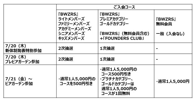 2. 『BWZRS』への入会(お申し込み、ご決済)が完了しましたら、「新体制発表会&プレビアガーデン」へのお申し込みをお願いいたします。