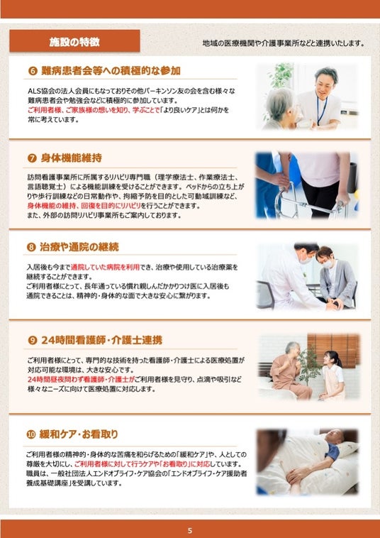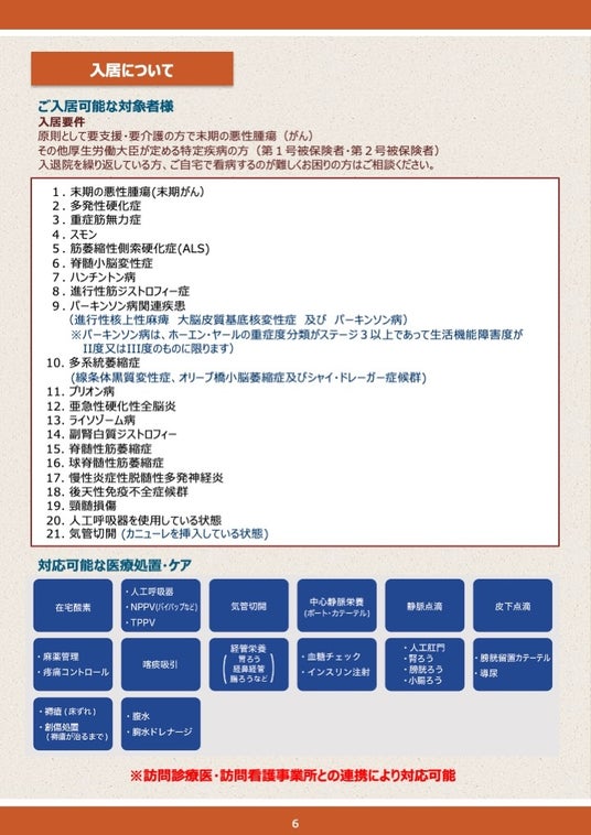 難病や末期がん療養者が施設入所において直面する最大の課題は、適切な医療・介護の確保と、QOLの確保です。メディホスでは、「住み慣れた場所で自分らしい生活を最期まで続けられるように」という想いのもと、療養者のご要望を日々の活動に反映するなど、それぞれの想いに寄り添う支援に取り組んでまいりました。