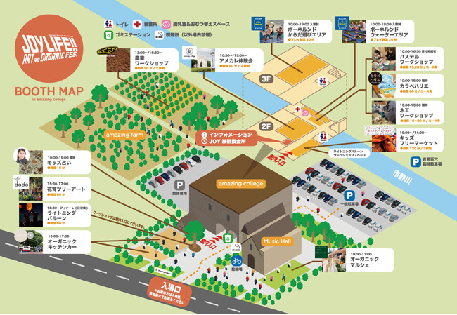 会場「amazing college」内にある大ホールに、子ども達に人気の遊具メーカー「ボーネルンド」の2種のプレイランド(からだ遊びエリア&ウォーターエリア)がやってきたり、農業体験ワークショップでは、人気フットウエアブランド「KEEN」がサポート!
