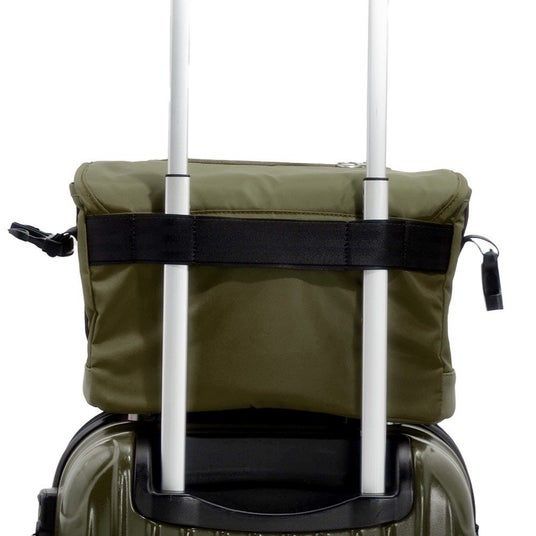 キャリーケースのハンドル部分に通して、キャリーオンバッグとして持ち運べる設計。