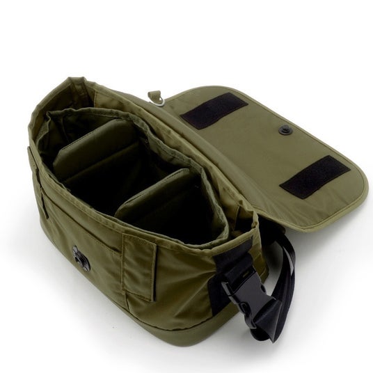 高密度ナイロンをメイン素材に使用することで、これまでのモデルよりも強度と質感が向上しています。さらに、バッグ本体にはウレタンクッションを内蔵し、専用の取り外し式クッションインナーケースが付属しています。このインナーケースは用途に合わせて簡単に入れ替えることができます。「BUCKET MOUTH 4」はカメラ専用バッグとしてだけでなく、インナーバッグを取り外せば普段使いのショルダーバッグとしても活躍します。フラップにはマグネットとベルクロを併用した留め具を採用し、蓋の開閉が簡単に。マジックテープのバリバリ音や袖の引っ掛かりを防ぐために、マグネットバックルなど好みに合わせてフラップの開閉を選択可能です。バッグを置く際の衝撃を軽減する底鋲や、肩への荷重を軽減する幅広のショルダーパッドもアップデートされ、より快適に使用できます。レンズキットや1本の交換レンズを持ち歩く際に最適なこのバッグは、背面にキャリーバッグに取り付け可能なストラップがあり、キャリーオンバッグとしても使用できます。目安サイズは、一眼レフ(レンズ付き一眼レフまたは交換レンズ3本相当)、フルサイズミラーレス一眼(レンズ付き本体、交換レンズ1本)、APS-C機、マイクロフォーサーズ機(レンズ付き本体、交換レンズ2本)と、多様なカメラ機材に対応。
