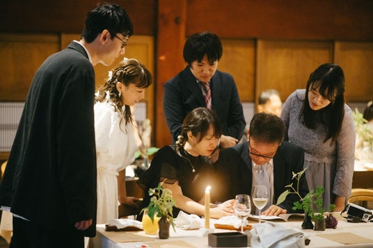 それに加えて、親子の会話だけでは聞き出せない子供への想いや、家族になるまでの葛藤、その葛藤を超えた幸せなど、その経緯も含めて残すことは“結婚”という家族同士が繋がるこの機会が一番良いと考えました。パンセ デ ゴリレのプロデュースは新郎新婦や家族の話をお伺いするところを起源としているので、私たちの関わりでこそ、それを引き出すことができると思い、家族の歴史を記す「家族史」の制作に踏み切りました。