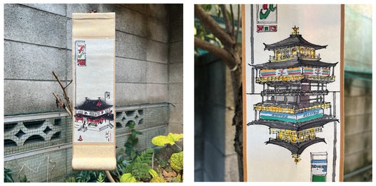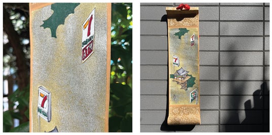 本展では、精緻に描かれた掛け軸作品を通じて、江戸時代の伝統と現代の東京のエネルギーが共存する世界を表現。コンビニという身近な存在を題材に、過去と現在が交差するユニークな視点を提示します。