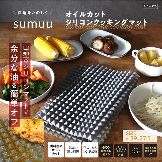 株式会社マクロスは、ライフスタイルブランドsumuuより、山型の形状でヘルシーに料理を仕上げられるオイルカットシリコンクッキングマットを2024年12月24日より販売開始いたしました。