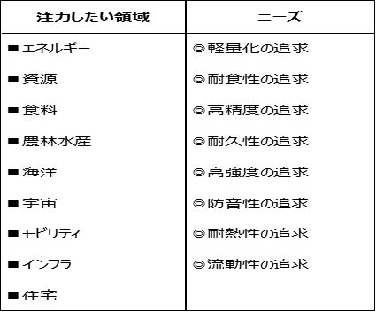 下記領域・ニーズから抽出した『100の困りごと』に『100のモノづくり』で応