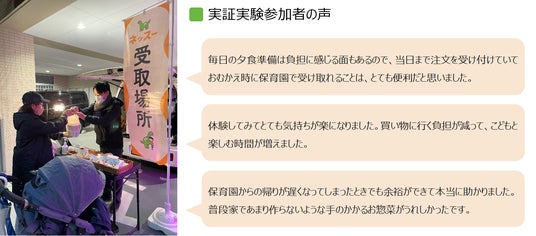 そこで、家事時間のおよそ3分の1を占める食事に関連する時間を削減し、親の時間を創出すべく、本サービスを開始しました。サービス立ち上げに当たって、当社本社所在地である世田谷区と連携して2023年2月に区内保育園にて実証実験を行い、サービスの価値やユーザーからの正式開始への期待を確認したうえで、事業開始の準備を進めてまいりました。そしてこのたび、正式にサービスを開始いたしました。