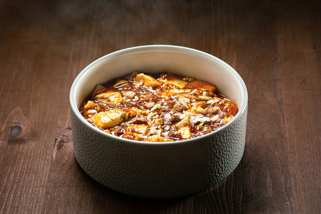麻婆豆腐:名物料理の一つ。絶対に食べて頂きたい一品。厳選した山椒・花椒・唐辛子の「痺辛」をお楽しみ下さい。「景色が滲む」ほど爽やかな辛さがクセになる、一品です。