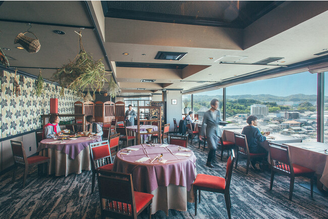 掛川の街並みを見下ろす絶景の特等席が、お客様の食欲をそそります。