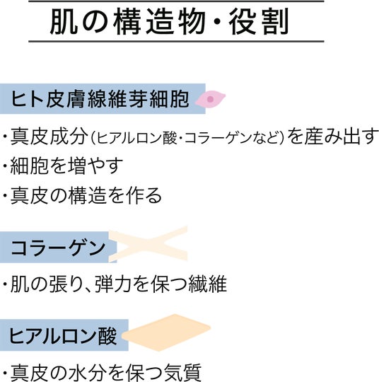 2.ヒアルロン酸産生試験(保湿効果試験):試験の結果、各濃度グループのコントロールに対するヒアルロン酸産比が、10 および 100 μg/mL のサンプル濃度で、有意に増加することが確認できた。