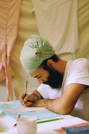 Jatinder Singh Durhailay was born in 1988 in London, United-Kingdom. He received a Bachelor of the Arts from University Arts London in 2011 and has been working as a painter ever since. His artistic practice spans painting and drawing, with a special interest in the usage of naturally derived pigments, as well as Indian classical music.