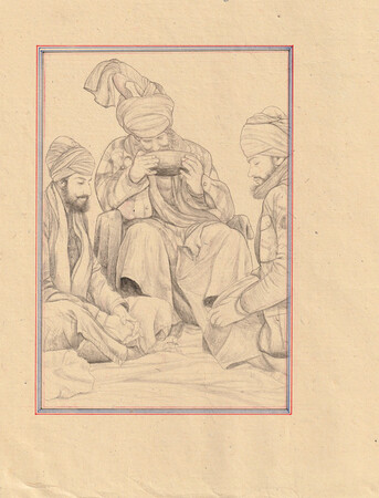 インドのムガール細密画のスタイルによるドローイング作品