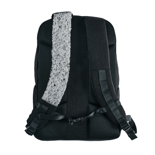 それは、バッグを背負っている時だけではなく、一日の肩への負荷を減らすことで使い終わったときの疲労感を和らげ、昨日までとは違う日常体験をデザインしていく。ハイテクノロジー素材、搭載。