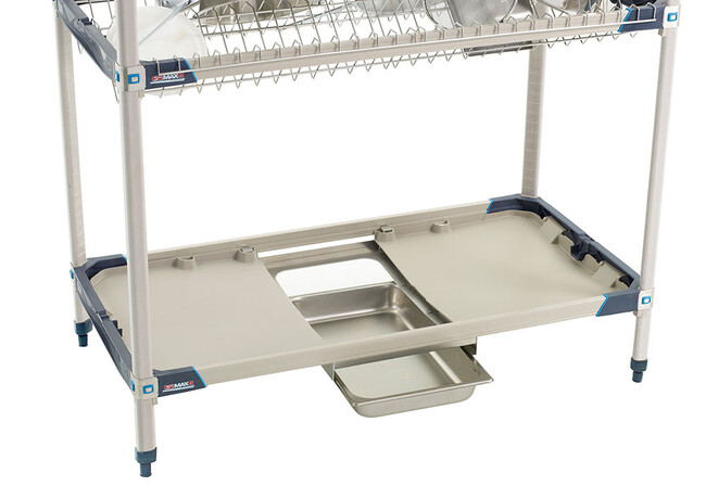 さらにドリップトレイをラックの下に装着することで、床が濡れるのを防げます。乾燥時の水滴を収集し、水たまりの発生を防止。十分な排水設備がないスペースでも安心してご使用いただけます。