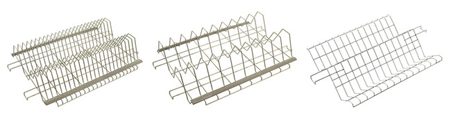 洗い終わった調理器具が接触しないよう、調理器具の間に空気が通過するための十分なスペースを確保。ラックの形状が3種類あるので、異なる形状や大きさの調理器具を効率よく安全に乾燥させることができます。