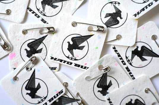 有限会社コトブキ印刷(所在地:広島県府中市、代表取締役:宗藤 勝美)が展開する、廃材を障がいのある方々の手によって手漉き紙に生まれ変わらせる「めぐる、手漉紙。」では、このたび株式会社はとバス(所在地:東京都大田区、代表取締役:武市 玲子)のツアーバッジを製作しました。はとバスは「平和」「安全」の象徴である鳩が社名の由来であることから、広島市平和記念公園に捧げられた折り鶴を漉き込んだ「おりづるペーパー」を採用。バッジは10月12日(土)より、はとバスの最上級バス[ピアニシモIII]で運行するバスツアーに参加されるお客様にご着用いただきます。