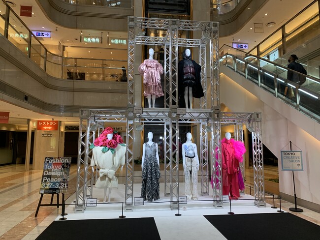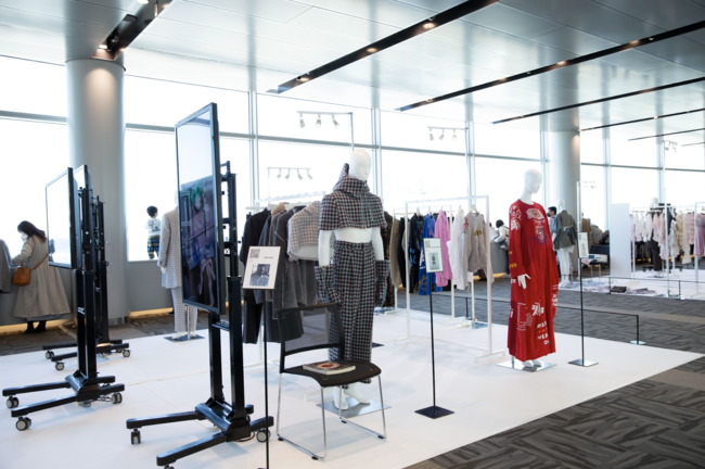 羽田エリアのコンテンツで展示が行われていた、東京を代表するデザイナーMIKIO SAKABE、AIも駆使してルックをつくるファンタジスタさくらだの作品を展示。東京のファッションを世界に向けて発信します。