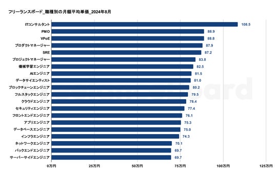 フリーランスボードでは2024年8月6日時点の161,190件の掲載案件を対象に開発言語・フレームワーク・職種別の月額平均単価を調査いたしました。