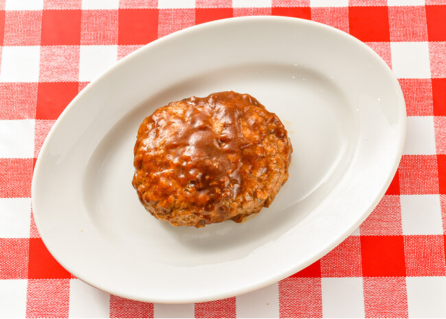 ▼トッピング「ハンバーグ」も、さらに大きく食べ応え抜群に!