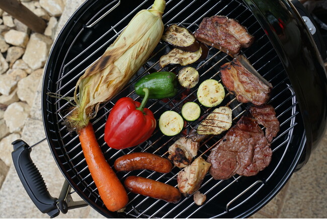 スペアリブ・ウインナー・鶏もも肉・季節の焼野菜・焼おにぎり・ポテトフライ