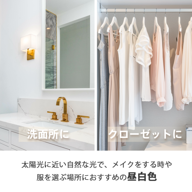 温かみがありリラックスできる「電球色」と、自然な光の色に近い「昼白色」。