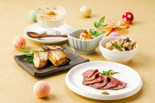 高野山麓でつくられる「干し柿」やオリジナルロゴ入り「高野豆腐」、お大師さまが伝えたとも伝わる「金山寺味噌」、そして和歌山県が全国生産量1位を誇る「ぶどう山椒」、ごま豆腐風のデザートに邪を祓うと言われる縁起の良い柑橘「じゃばら」のジャムを添えるなど、和歌山の恵みとお大師さまゆかりの食材をたっぷりとご賞味いただける逸品をお詰めした和洋折衷の祝い膳です。2024年8月23日~12月20日まで、公式オンラインサイトとFAXにてご予約を承っています。