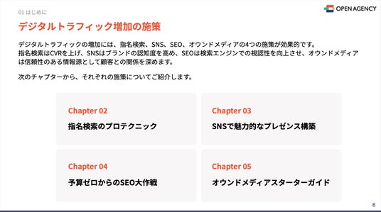デジタルトラフィックを最大化することで、潜在顧客の範囲が拡大し、売上への貢献が期待できるでしょう。〇ガイドブックで得られる4つのポイント