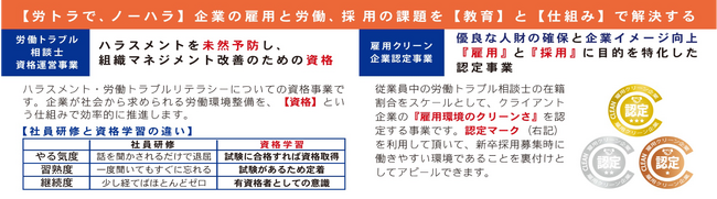 【労働トラブル相談士 資格運営事業】職場でのハラスメントや労働トラブルの未然予防で生産性向上を図ります。