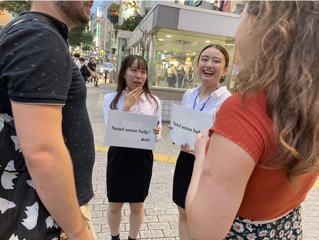 道案内はもちろん渋谷で日本語がわからないために困っている外国人観光客をお助けするキャンペーンで『おすすめの観光スポットはどこ?』など、通常店舗に来られたお客様との会話を渋谷駅近郊まで広げたサービスとなっております。
