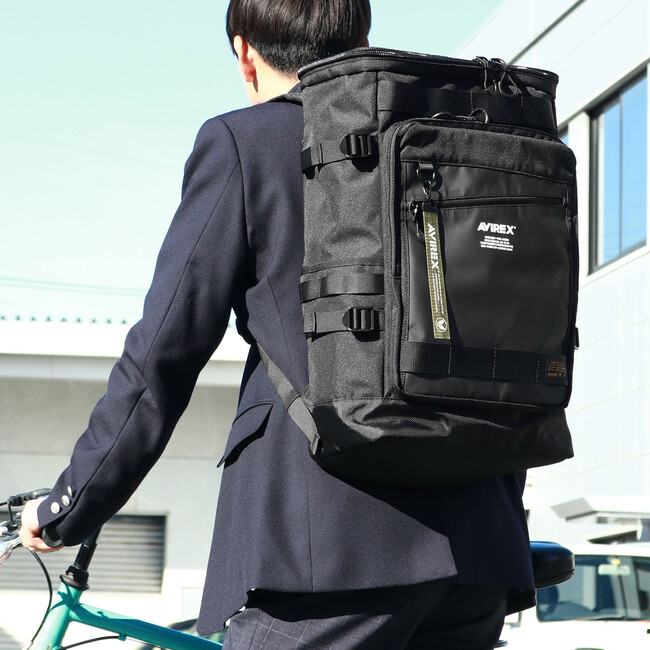AVIREXで人気のスクエアリュックから、当店限定モデルが登場。付属のリボンテープと内装生地にオリーブカラーを使用しており、正面のネームもフライトジャケットを彷彿とさせるデザインの織ネームを採用することで、ミリタリー感溢れる仕上りになっています。