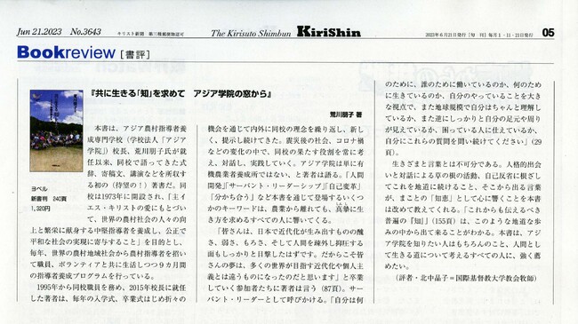 【書評】 『共に生きる「知」を求めて アジア学院の窓から』 荒川朋子