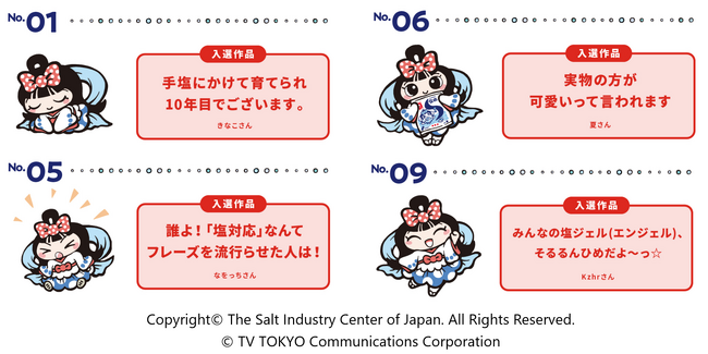 公益財団法人塩事業センター(東京都品川区、理事長:津田 健)は、「食塩」のキャラクター「そるるんひめ」の10周年を記念するアニバーサリーイベント「そるるんひめ 10周年記念 大喜利大会」の入選10作品を決定し、イベントサイトにて公開いたしました。