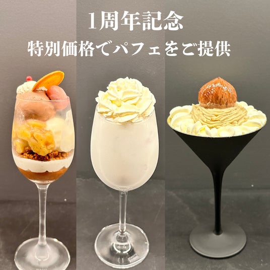 高級パフェ専門店「QeFare」では、開店1周年を記念して、10月限定で特別価格のパフェ&ドリンクセットを提供いたします。これまでご愛顧いただいたお客様への感謝と、より多くの方に当店のパフェを楽しんでいただきたいという思いを込め、期間中、通常価格より500円引きでのご提供となります。