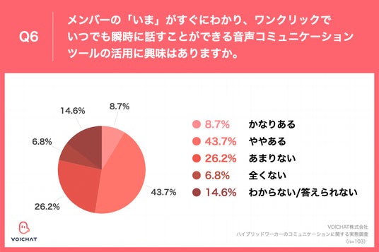Q6.メンバーの「いま」がすぐにわかり、ワンクリックでいつでも瞬時に話すことができる音声コミュニケーションツールの活用に興味はありますか。」(n=103)