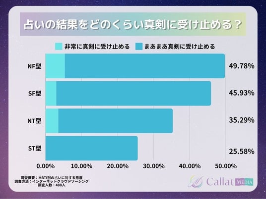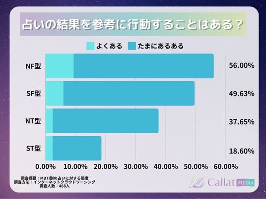 - 占い結果を真剣に受け取りやすいN型・F型の方が占い結果を参考に行動する傾向がある