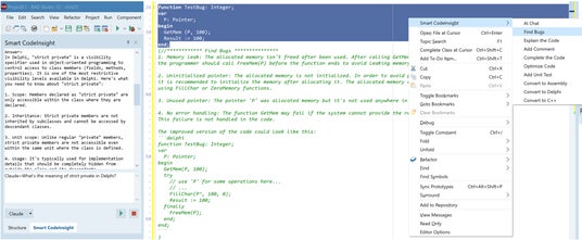 RAD Studio 12.2 Smart CodeInsightによる生成AIを用いたコーディング例(画像は英語版)