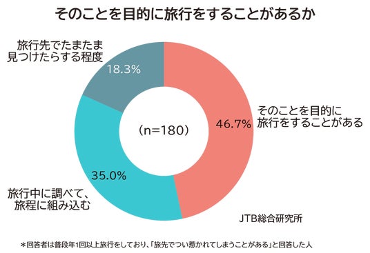 旅先で、なぜか見かけると必ず足が向かってしまう、なんとなくつい探し、見つけると嬉しくなる、そんなモノやコトはないでしょうか?旅行の主役ではないけれど、旅先での体験に彩りを添える、名脇役のような存在として、旅行者はどのようなコンテンツを求めているのか。株式会社JTB総合研究所(東京都品川区 代表取締役社長執行役員 風間 欣人)は、アンケート調査とインタビュー調査を交え、「旅先で惹かれるものに関する調査」をまとめました。