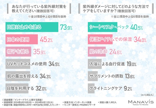 紫外線ダメージを受けた肌は乾燥しやすくなるため、シートマスク・パックや保湿アイテムなどでスキンケアをする方が多くいることが明らかになりました。