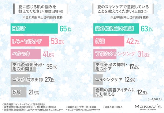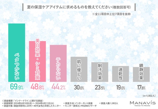 株式会社マナビス化粧品(所在地:千葉県浦安市、代表取締役社長:兼子 慎一)は、20~40代の女性を対象に「インナードライ」に関する調査を実施しました。