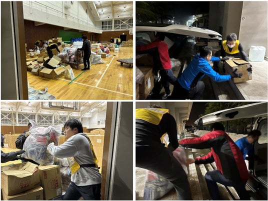 飲料水などのプッシュ型の支援が届きつつあるものの、自治体関係者からのニーズとして下着やタオルなどが不足している状況で、認定NPO法人フードバンク山梨からは、タオル5,000枚、下着・靴下が男女400枚、ゴミを捨てるためのゴミ袋2,000枚、身体拭き用ウェットティッシュなどを車両に積み込み、被災地に向け出発しました。(1月6日時点)