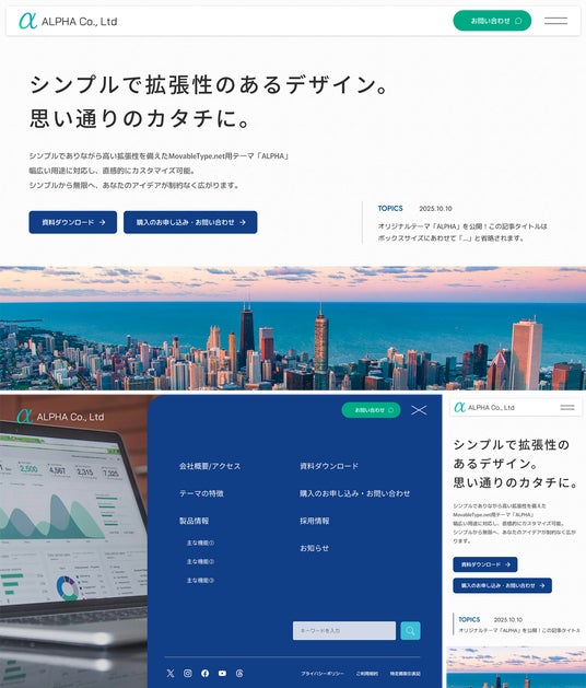 その第1弾として、一般企業や医院、士業など、情報発信を重視するウェブサイトに幅広く対応できるテーマとしてTYPE: ALPHAをリリースします。