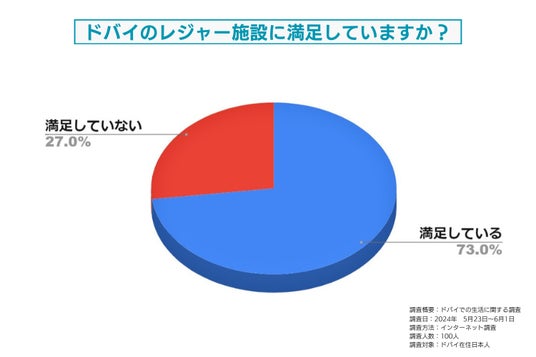 弊社が運営する『ドバイ総合研究所』は、ドバイ在住の日本人を対象に「ドバイのレジャー施設に対する満足度」についてアンケート調査を実施しました。結果は以下の通りです。